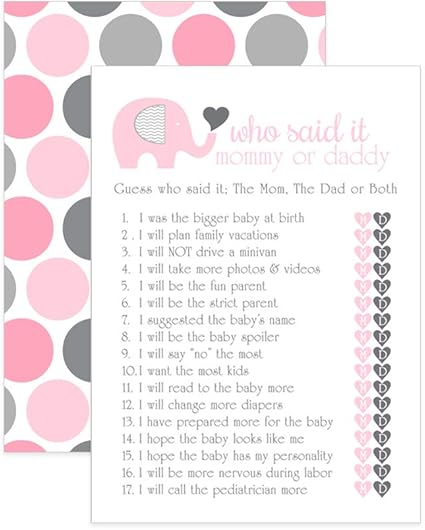 Baby Shower Juego Mama O Papa Paquete De Tarjeta De 25 5 X 7 Adivina Quien Sabe Quiz Ebay