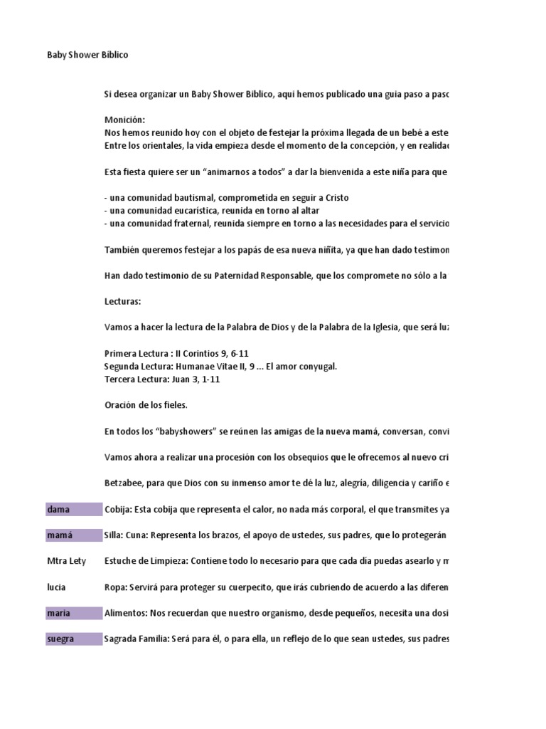 Oraciones Para Baby Shower Religioso Pdf