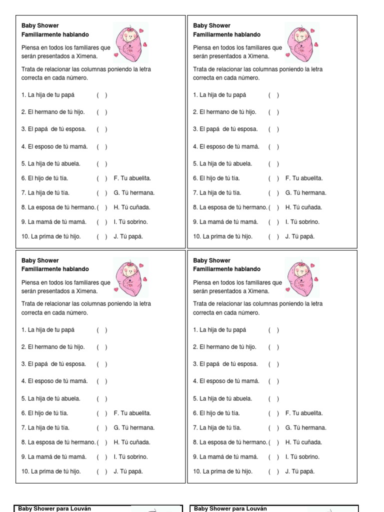 Juegos Para Baby Shower Pdf Familia Sociedad