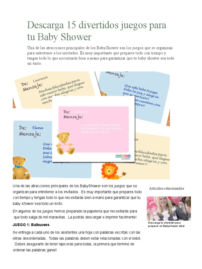 Descarga 15 Divertidos Juegos Para Tu Baby Shower Pdf Ocio Naturaleza